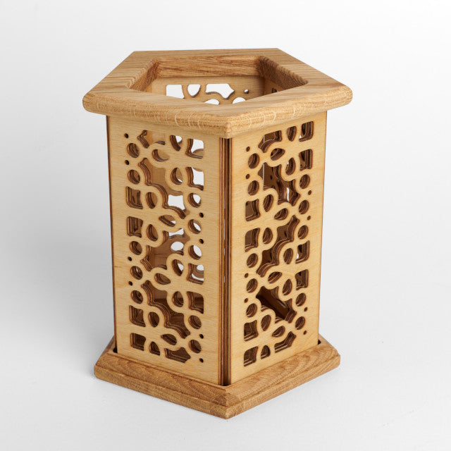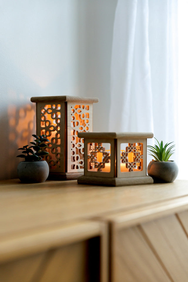 Valmistatud tammepuust ja kõrgema klassi kasevineerist, hoolikalt lihvitud ja viimistletud naturaalse puiduõliga, et tuua välja materjali loomulik ilu. Pakume ka viimistlemata varianti neile, kes austavad puhast puitu või soovivad ise värvida oma sisustusega sobivasse tooni. Iga latern on hoolega üle vaadatud ja käsitsi kokku pandud. Valmistatud Eestis ja kohalikult hangitud materjalidest. Teadagi on nii Tamm kui Kask Eestile pärismaised lehtpuud ja on kõrgelt hinnatud mööbli, põrandate ja muude esemete valmistamisel. See tagab stabiilse ja vastupidava toote, mis pakub nii silmailu kui funktsionaalsust.